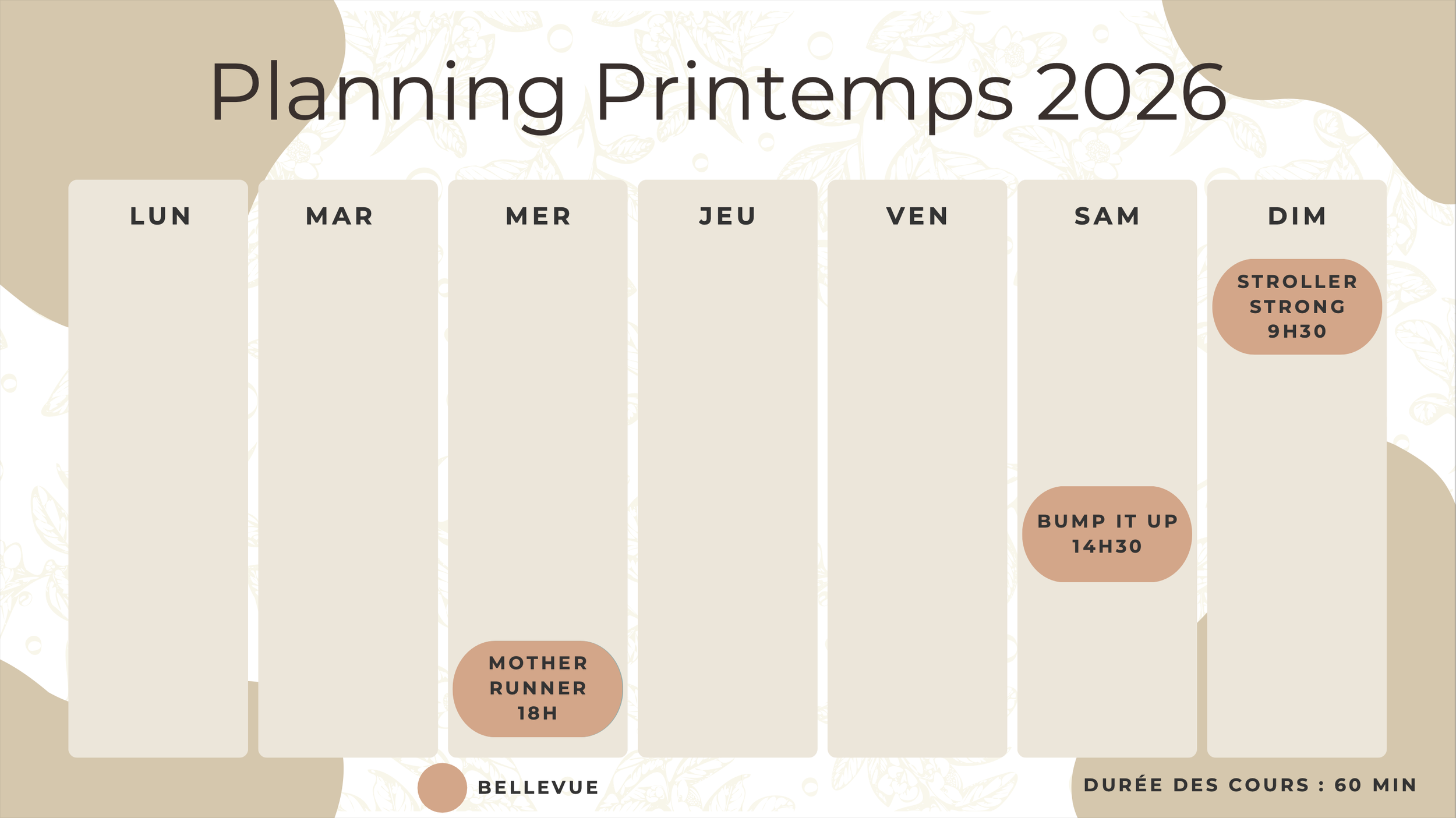 Séances en extérieur valables pour Stroller Strong et Mother Runner. Dès septembre 2025.